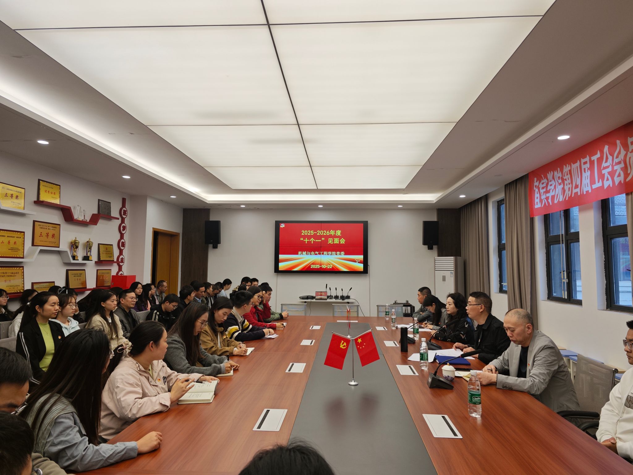 为深入学习习近平新时代中国特色社会主义思想,贯彻落实党的二十大精神和习近平总书记来川来宜来校视察重要指示精神,推动党建与人才培养深度融合,进一步提升党员干部的服务意识和服务能力,2025年10月22日,机械与电气工程学院(以下简称机电学院)党委召开2025-2026学年“十个一”活动见面会。机械与电气工程学院和国际合作与交流处科级以上党员干部、党员教师及相关学生参会。会议由机械与电气工程学院党委书记潘树林主持。