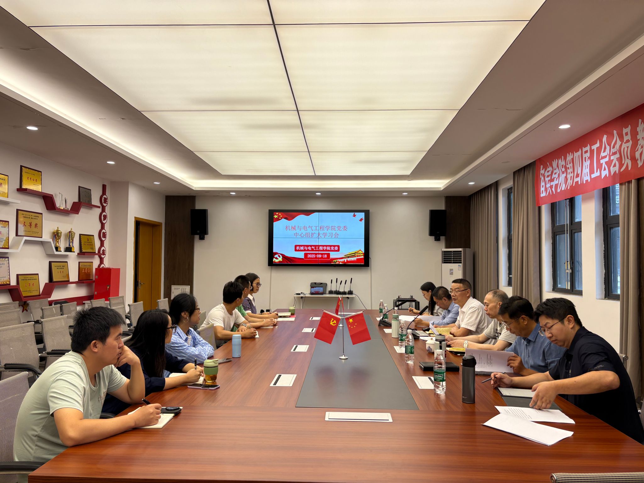 2025年9月18日,宜宾学院机械与电气工程学院党委组织召开了中心组扩大学习会,深入学习贯彻习近平总书记系列重要讲话精神,深入贯彻中央八项规定精神学习教育,进一步统一思想、凝聚共识,为推动新时代高质量发展提供坚实的思想基础和行动指南。会议由机械与电气工程学院党委书记潘树林主持,处科级干部参与学习。