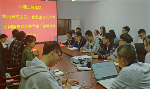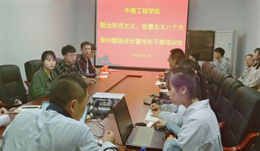 为认真贯彻落实党中央、中央纪委、省委、省纪委、省委教育工委关于集中整治形式主义、官僚主义突出问题的部署,中德工程学院于2019年4月14日组织同学在学院会议室举行查摆问题的座谈会。