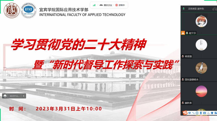 2023年3月31日上午,学部在线召开学习贯彻党的二十大精神暨“新时代督导工作探索与实践”研讨会,对学院近期督导工作和人才培养工作情况进行通报和部署。学部督导组成员、各教研室主任、教学办工作人员参加了本次会议,会议由教学办主任谢晓永主持。