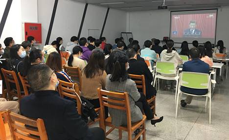 根据宜宾学院党委的统一部署和要求,10月16日上午10:00,国际应用技术学部党总支分别在A区图书馆624、临港校区3421室集中收听收看了中国共产党第二十次全国代表大会开幕会实况直播。