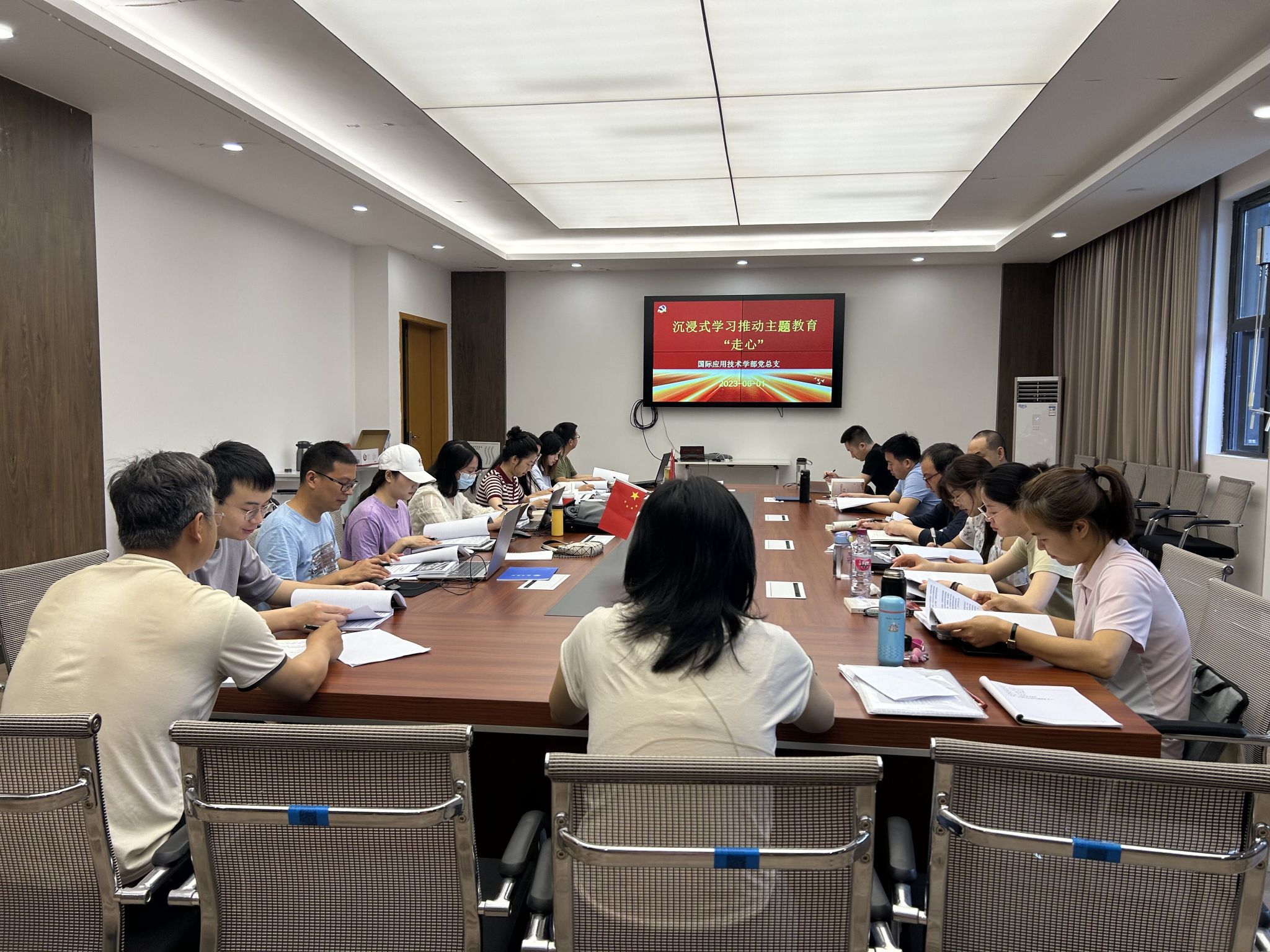 为进一步推进学习贯彻习近平新时代中国特色社会主义思想主题教育走深走实,强化理论学习指导发展实践,6月1日,国际应用技术学部党员教师在3421会议室开展“沉浸式”学习推动主题教育“走心”。学院全体党员教师参加,会议由党总支书记潘树林主持。