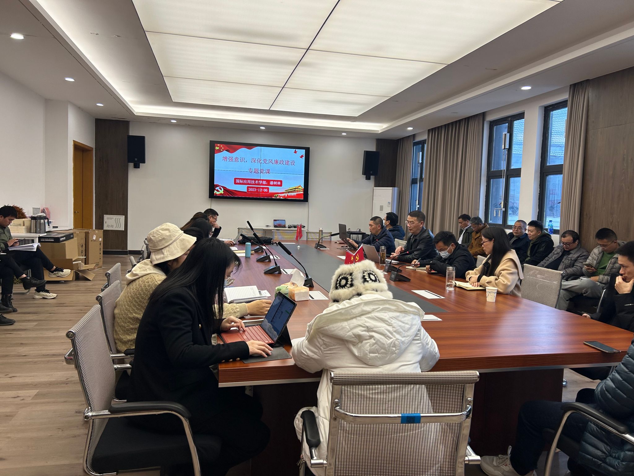 12月6日下午,国际应用技术学部党总支书记潘树林在临港校区3421会议室为党员教师讲授题目为《增强意识 深化党风廉政建设》的专题党课,国际应用技术学部党总支全体党员教师参加学习。