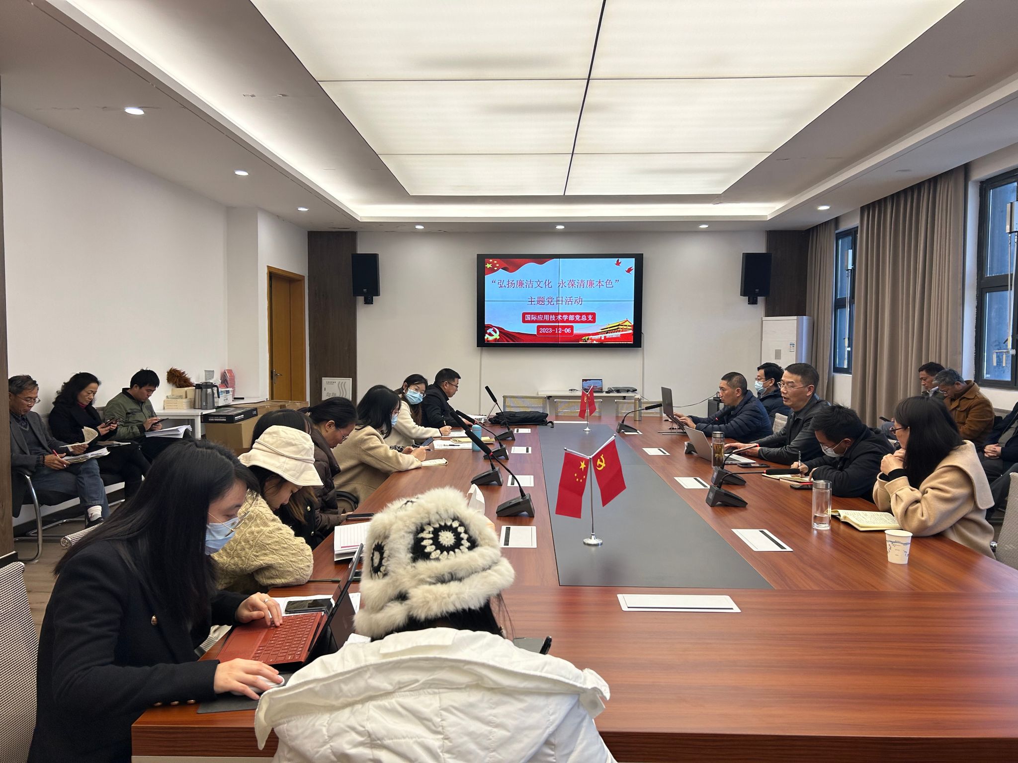 为推进学习贯彻习近平新时代中国特色社会主义思想主题教育走深走实,进一步加强党风廉政建设,提高党员教师的廉洁自律意识,2023年12月6日,国际应用技术学部党总支开展了以“弘扬廉洁文化 永葆清廉本色”为主题的主题党日活动,全体党员教师参加了活动。