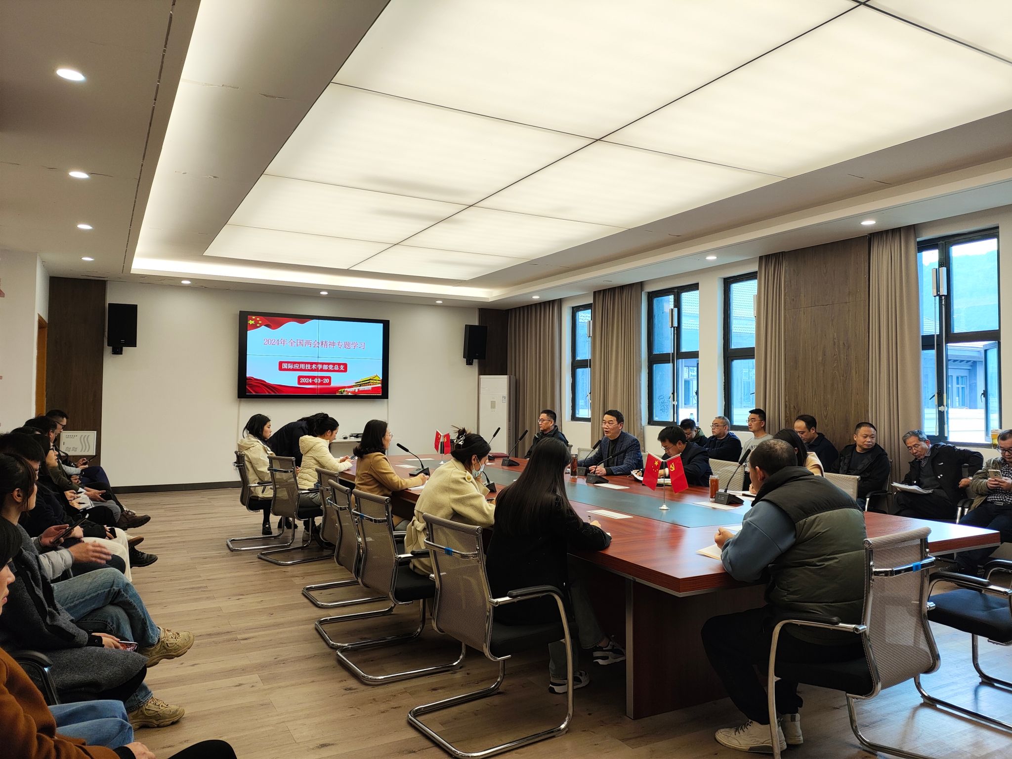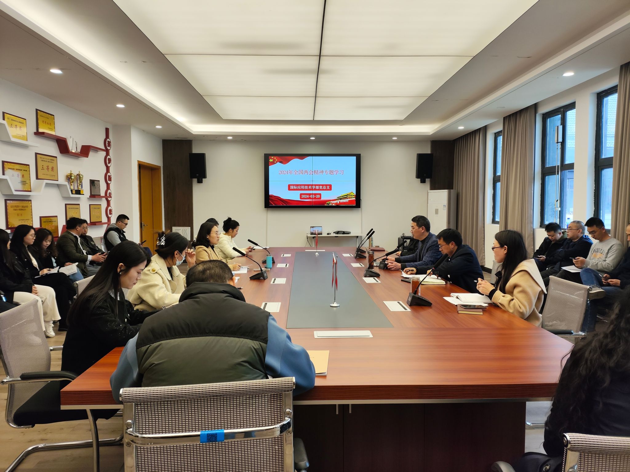 3月20日下午,国际应用技术学部召开理论学习中心组(扩大)会议,传达学习中国共产党纪律处分条例、学习2024年全国两会精神和2024年全国、全省教育工作会议精神,党总支书记潘树林主持会议。