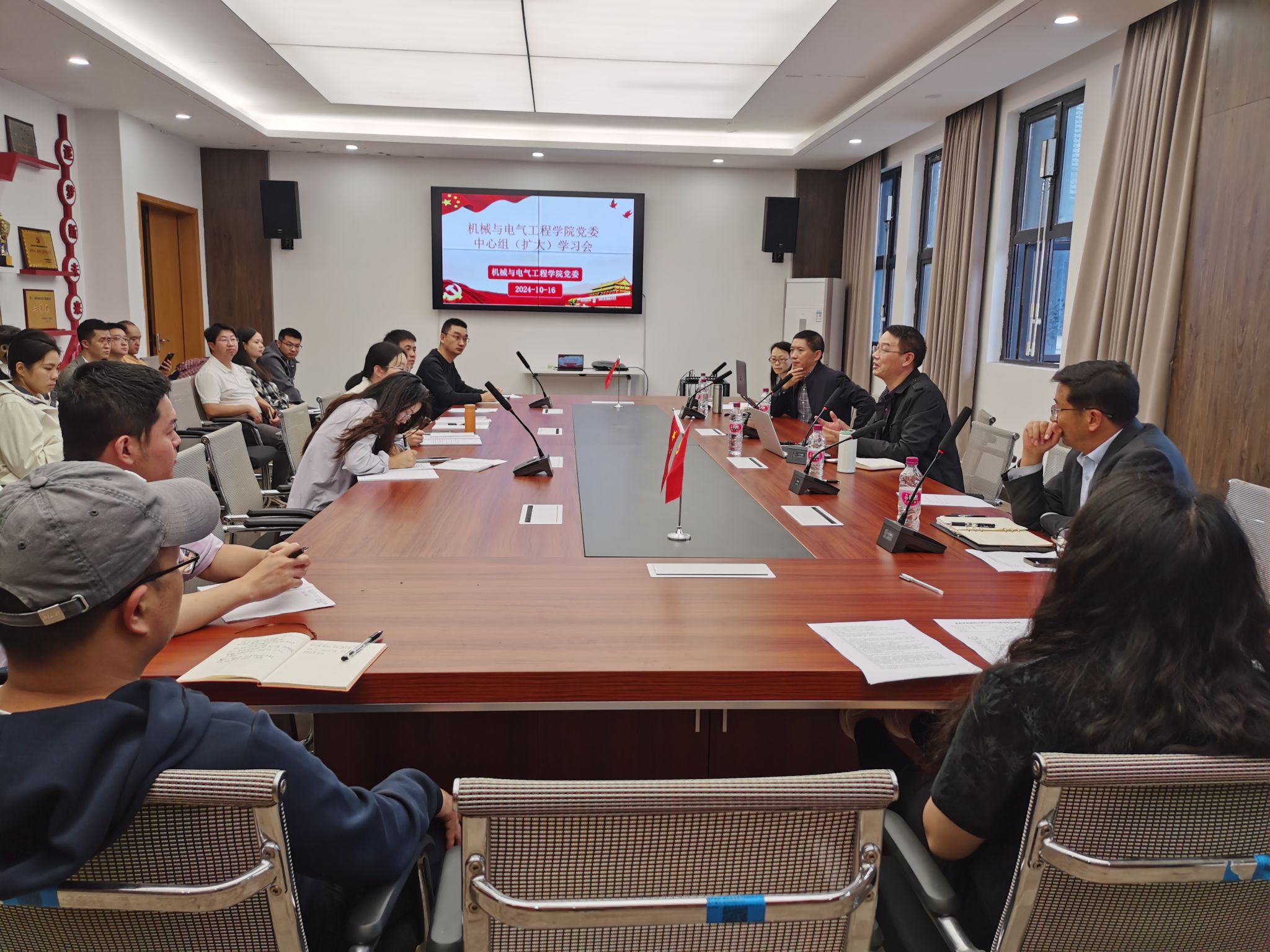 为深入学习贯彻习近平总书记系列重要讲话精神和党的二十届三中全会精神,机械与电气工程学院党委于10月16日下午在临港校区3421会议室召开专题学习会,会议由机械与电气工程学院党委书记潘树林主持会议,全体处科级干部及教研室主任参与学习。