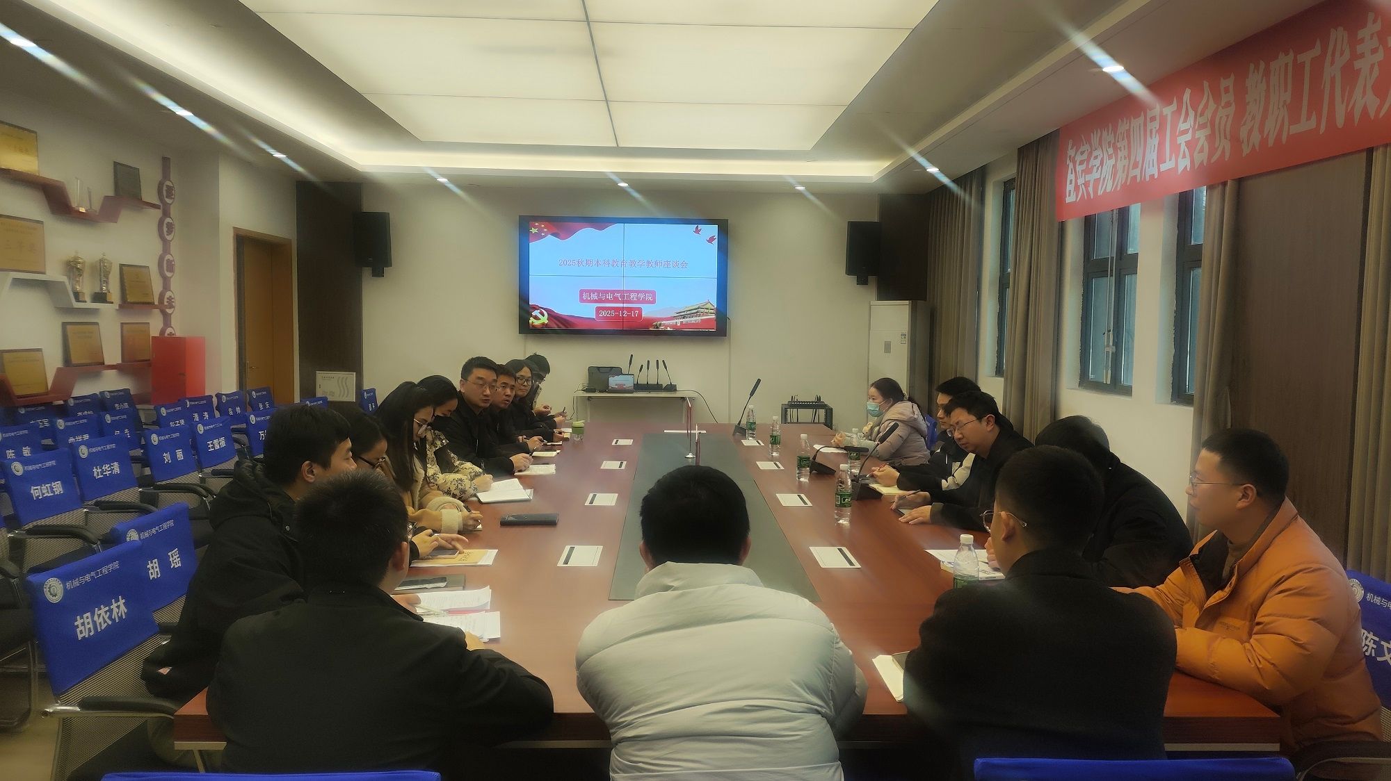 为凝聚育人共识,破解教学发展难题,12月17日16时,机械与电气工程学院召开2025秋期本科教育教学教师座谈会。学院副院长陈文俊主持会议,教研室主任、科室负责人、教师代表参会。