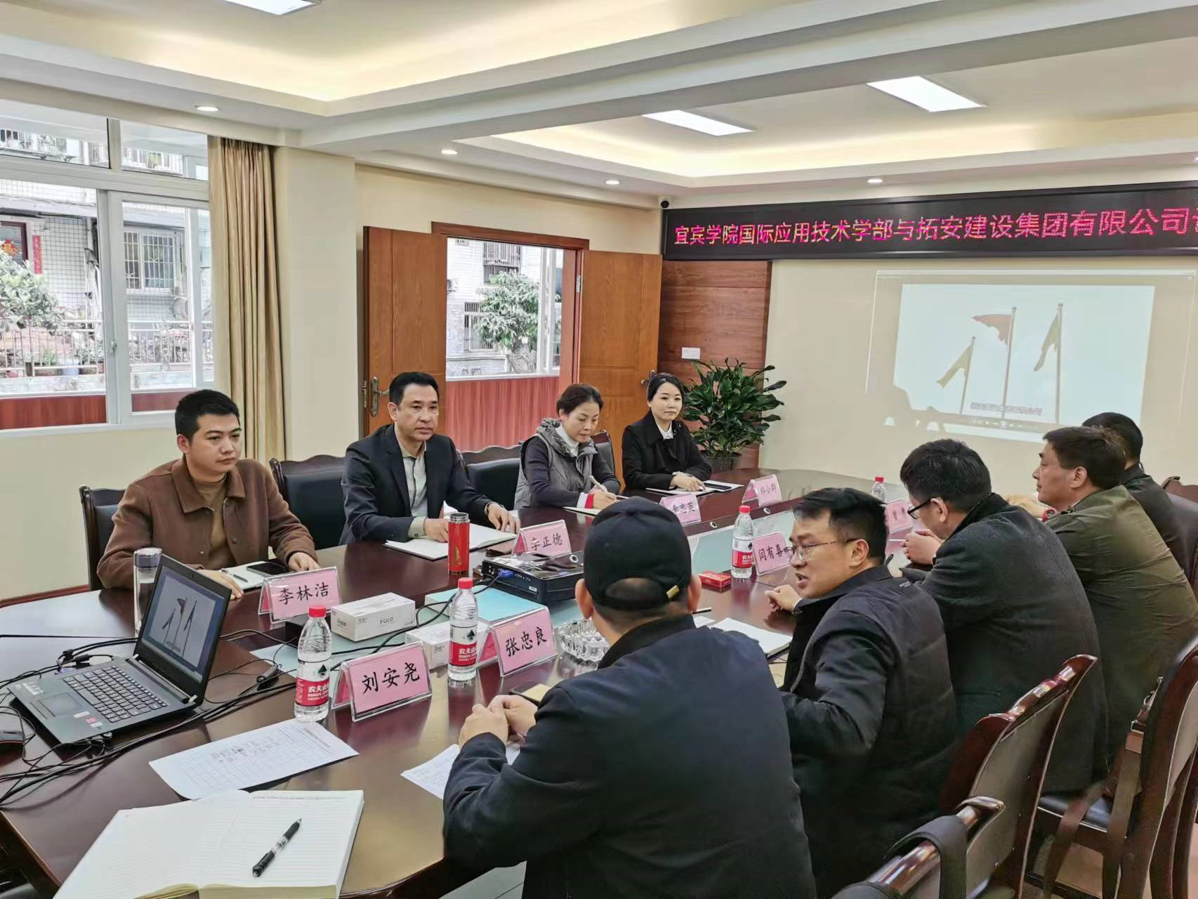 为贯彻落实习近平总书记来川来宜来校指示精神,深入推进党中央、国务院以及教育部、四川省委省政府关于“稳就业”“保就业”的工作部署,持续拓展校企合作工作成效,进一步强化人才培养服务地方经济发展的能力,宜宾学院国际应用技术学部副部长(负责工作)徐洲于2023年3月16日带领工程管理与建筑电气智能化专业两个教研室赴拓安建设集团有限公司开展“访企拓岗促就业”专项活动,拓安建设集团董事长李正德、总经理李林洁等参加了活动。
