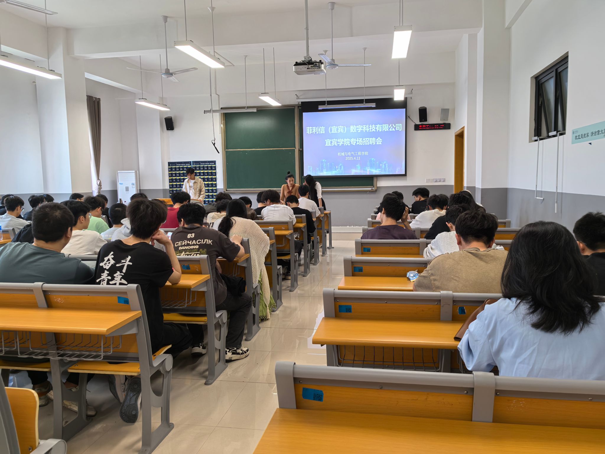 紧接着,4月11日,菲利信(宜宾)数字科技有限公司到校开展专场招聘会。学院党委副书记顾秋香、毕业班班主任以及毕业生积极参与。招聘会现场气氛热烈,众多毕业生带着精心准备的简历前来咨询应聘。企业招聘负责人详细介绍了公司的岗位需求、薪资待遇和职业发展路径等,同学们也纷纷就自己关心的问题与企业招聘人员进行沟通交流。
