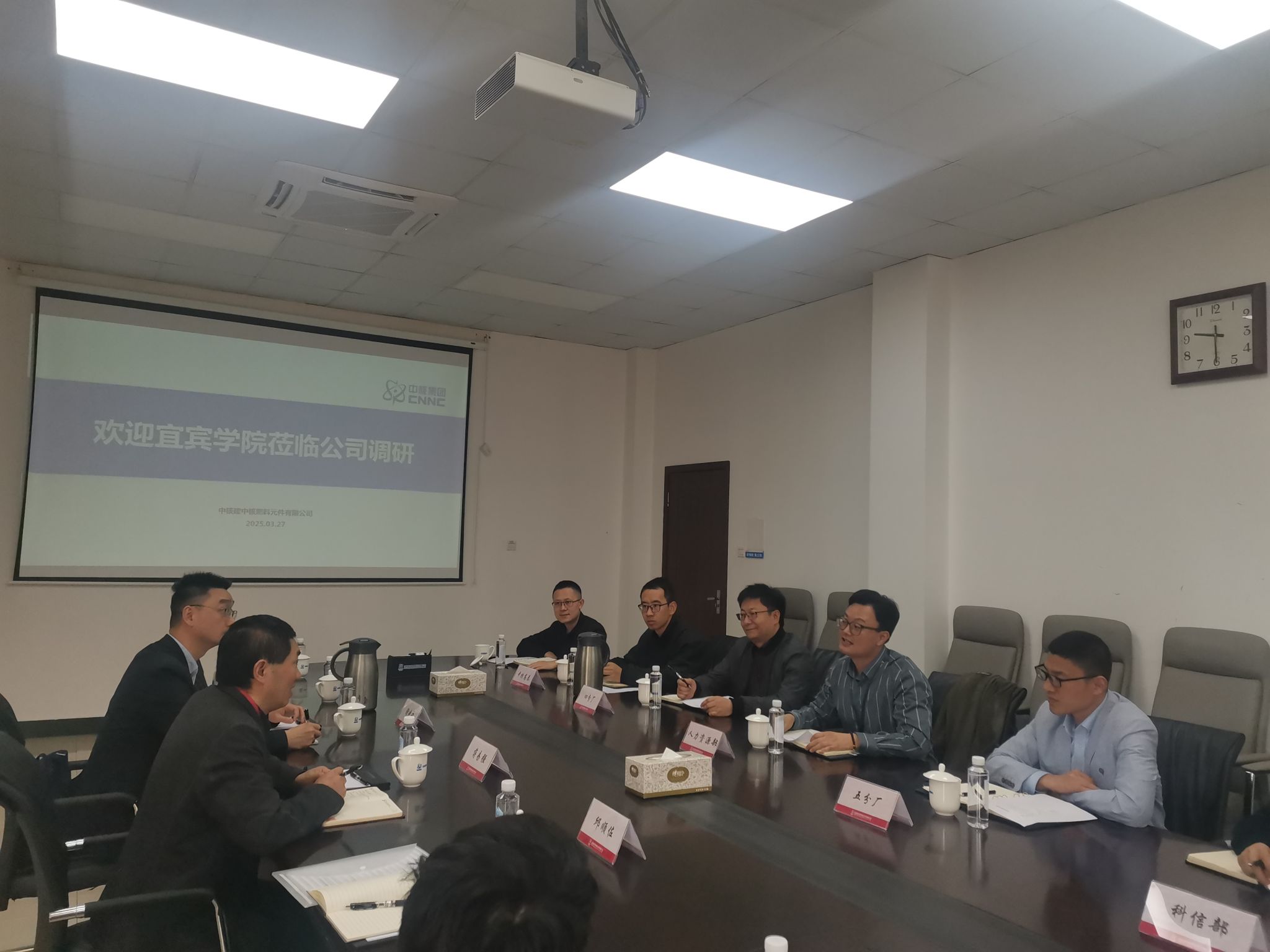 为深化产教融合,拓宽学生就业渠道,推动校企协同育人,2025年3月27日,机械与电气工程学院副院长蒋易强率队赴中核高泰(宜宾)精密管材股份有限公司、中核(宜宾)精密制造有限公司开展“访企拓岗”专项调研。学院教学办公室主任谢晓永、科研办公室主任邱顺佐、电气工程及自动化专业主任陈文俊随同走访,与中核高泰公司负责人甑利平、中核精密制造公司负责人冯印及企业技术骨干展开深入交流。