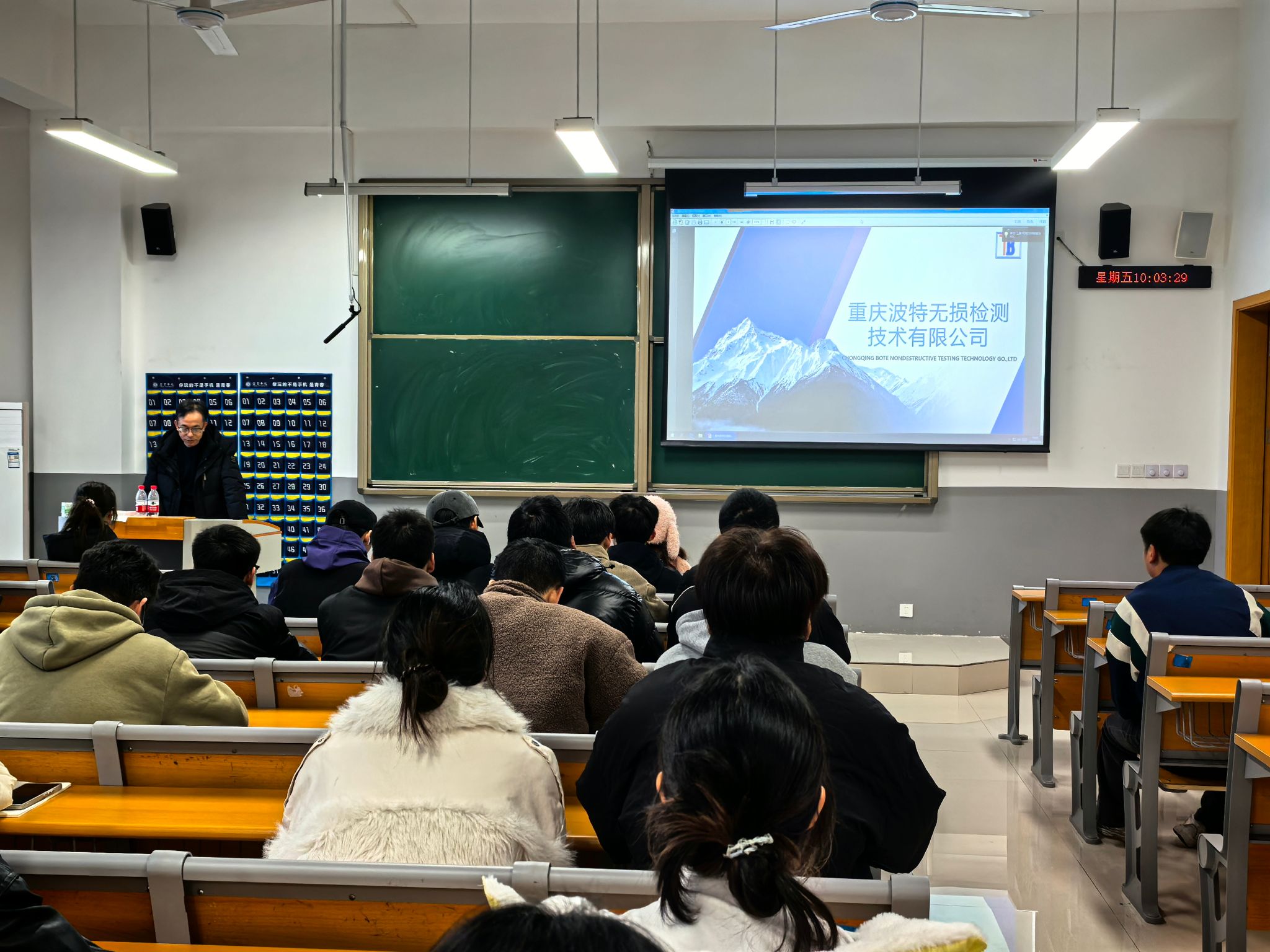 宣讲会伊始,魏康林副院长代表学院向重庆波特无损检测技术有限公司表达了诚挚欢迎与衷心感谢,并简要介绍了学院的专业设置与学生就业概况,强调了企业与学校合作交流对学生职业发展的重要性。