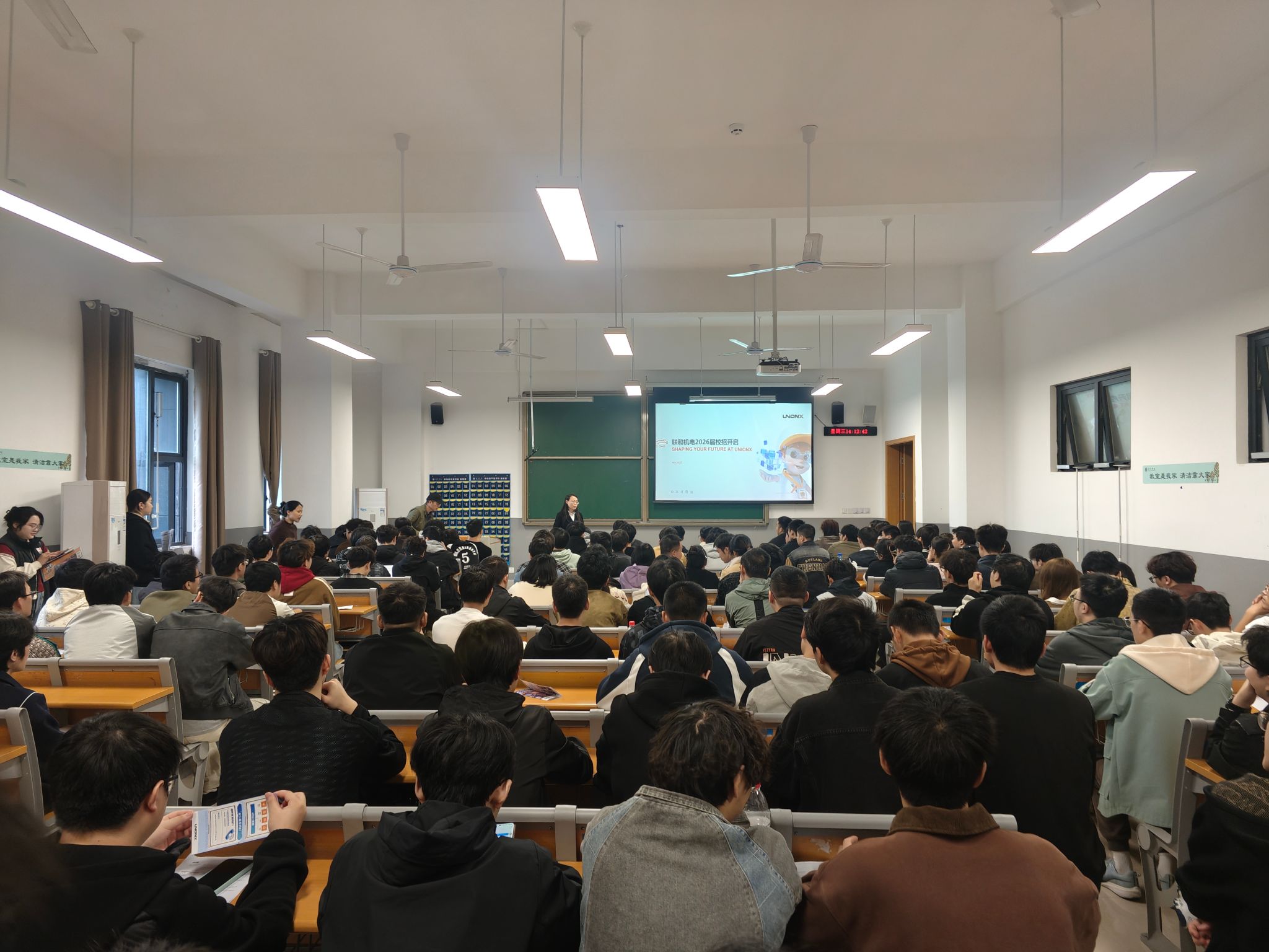 秋招黄金季,求职正当时。为精准链接优质企业资源,拓宽2026届毕业生就业渠道,2025年11月4日至5日,机械与工程学院集中举办专场宣讲招聘会,特邀浙江联和机电科技有限公司、人本股份有限公司、绍兴金江机械有限公司及西格迈股份有限公司四大优质企业入校揽才。学院党委副书记顾秋香与毕业班班主任全程参与,为学子求职保驾护航。
