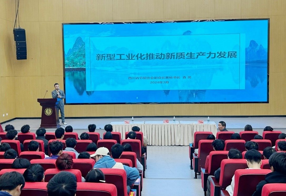 为深入贯彻落实习近平总书记来川来宜来校视察重要指示精神,提升人才培养,加强毕业生就业指导服务,进一步促进大学生高质量发展,高质量就业。国际应用技术学部于2024年3月14日在求实会堂举办以“新型工业化与高质量发展对新时代工业人才需求”为主题的分享会,会议邀请四川省节能协会副会长兼秘书长、四川省环保产业协会副会长袁亮和四川川能智网公司副总经理张开龙作为分享嘉宾,学部副部长蒋易强、工业工程教研室杨燕、胡友梅、姚媛博等老师以及全体工业工程同学参会。