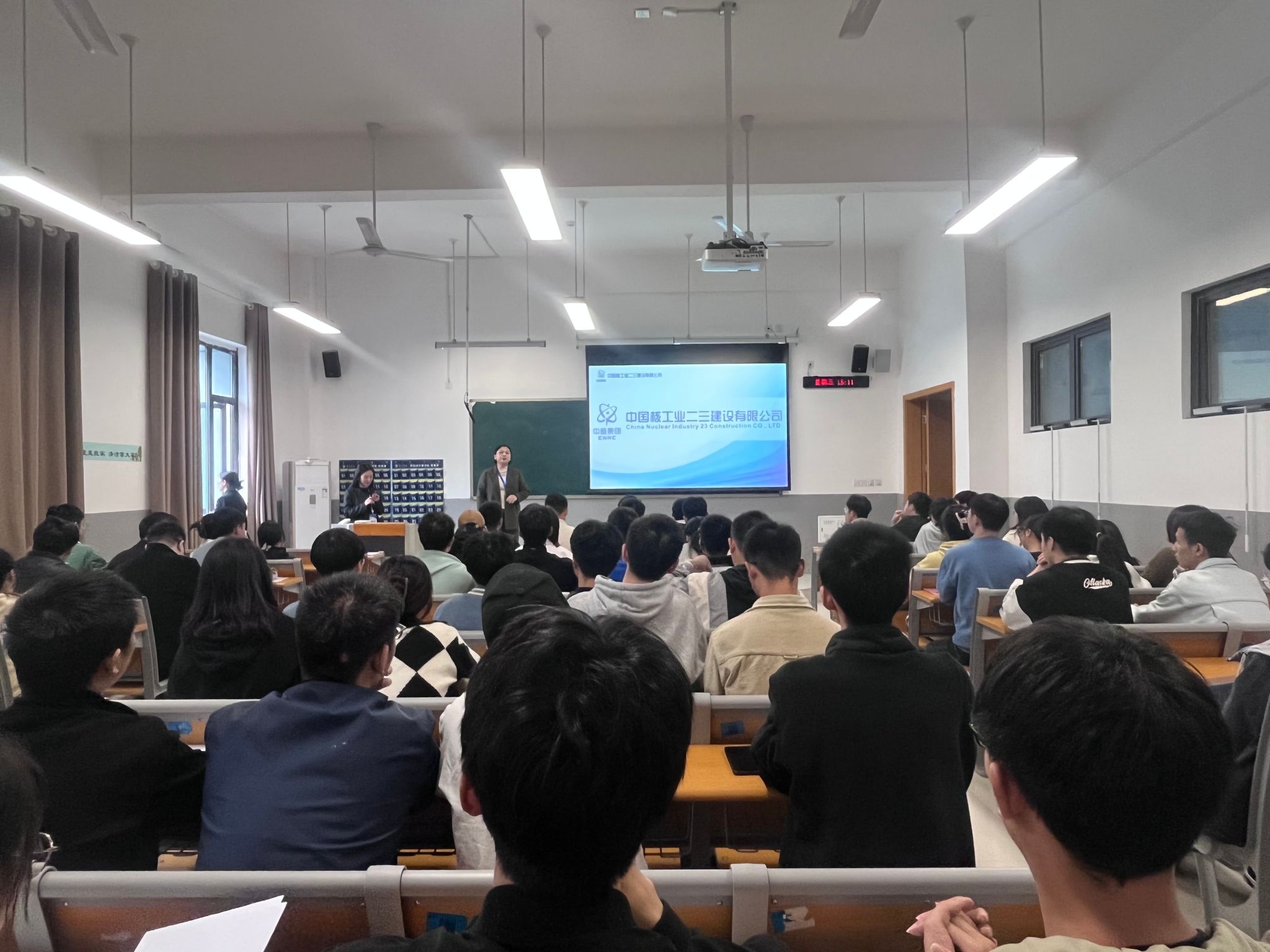 为深入学习贯彻习近平新时代中国特色社会主义思想,落实习近平总书记来川来宜来校视察重要指示精神,做好做实2024届毕业生就业工作,为毕业生提供多元化的就业服务。2023年11月1日,国际应用技术学部联合中国核工业二三建设有限公司组织开展了专场招聘宣讲会,环境工程、工业工程、工程管理、安全工程等相关专业2024届毕业生参加本次宣讲会。