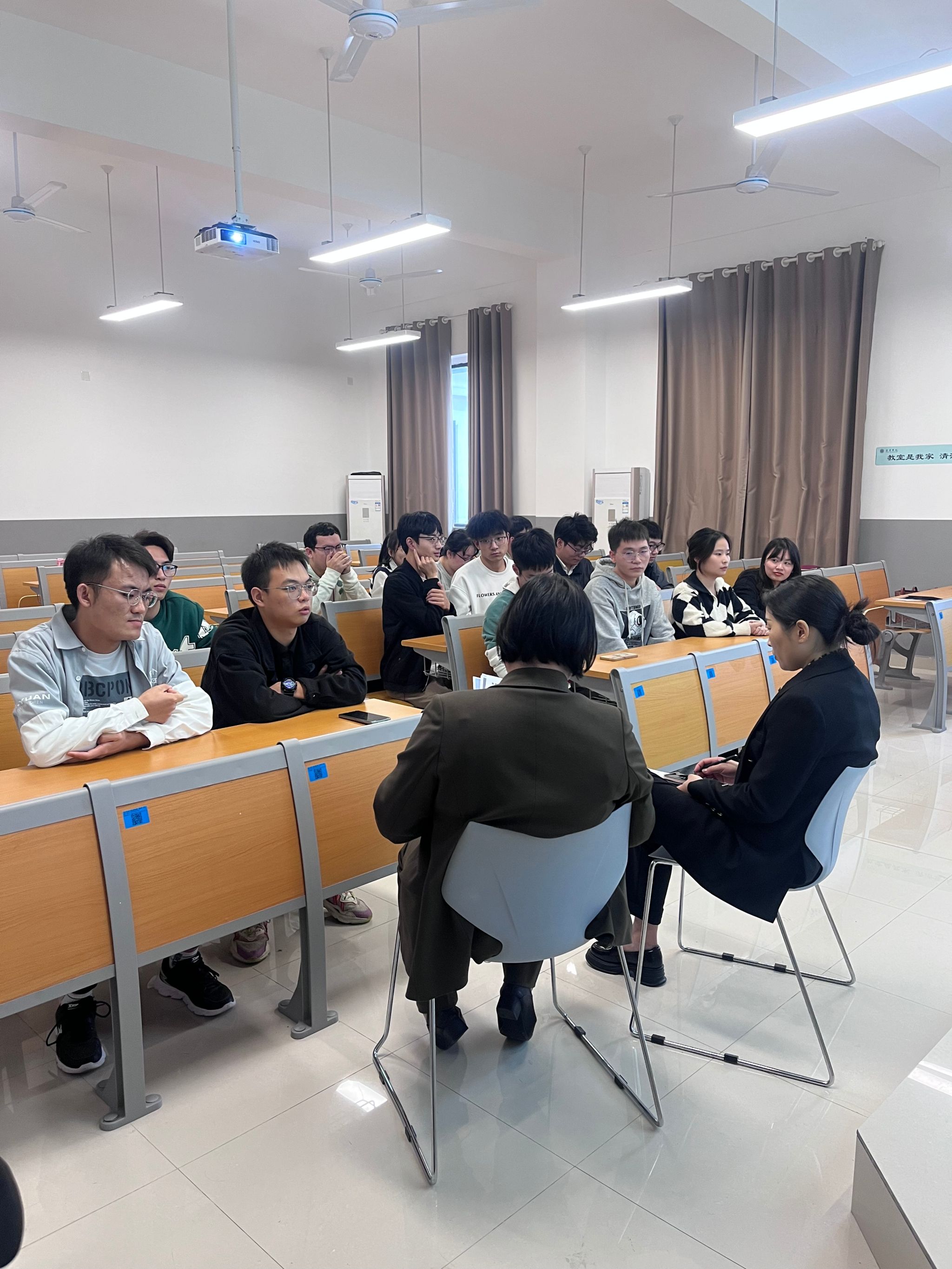 宣讲会上招聘组就公司的发展状况、此次招聘所需的岗位、招聘条件、薪酬福利、人才培养方式等进行了讲解,鼓励同学们积极投递简历,并表示期待同学们的加入。随后,在自由交流环节中,同学们也提出了自己的想法,招聘组针对同学们的问题进行了全面解答,让同学们对公司的情况和招聘要求有了进一步的了解。宣讲会后,50名毕业生投递了简历,并开启了面试环节。
