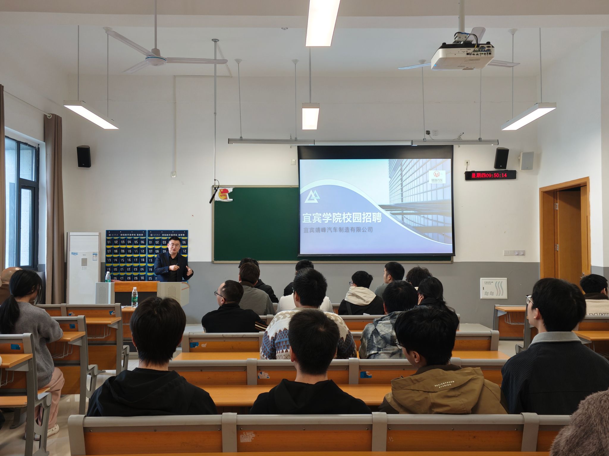 2025年11月13日,机械与电气工程学院特邀宜宾靖峰汽车制造有限公司到校举办专场宣讲招聘会。企业法人李强、技术总监邓健华携核心招聘团队亲临现场,与2026届毕业生面对面交流,最终40余名同学投递简历,10名学子经两轮面试成功斩获Offer。