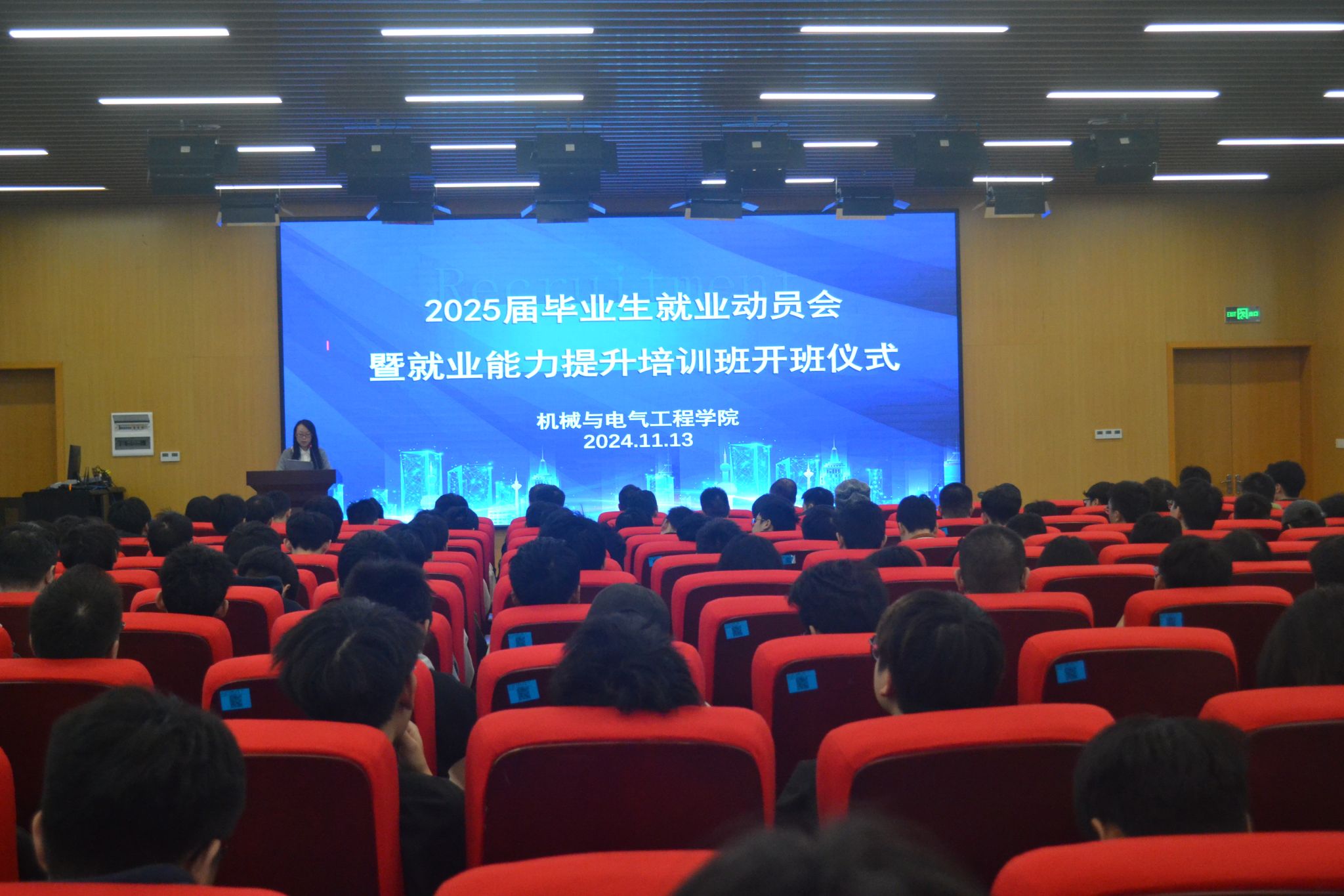 为深入贯彻落实党的二十届三中全会精神和党中央、国务院关于做好高校毕业生就业工作的决策部署,抢抓秋季黄金就业季,全力促进学院2025届毕业生高质量充分就业。机械与电气工程学院于2024年11月13日在6号楼6101举办2025届毕业生就业动员会暨就业能力提升培训班开班仪。学院领导班子、毕业班班主任辅导员、2025届未就业毕业生参会。会议由学院党委副书记顾秋香主持。