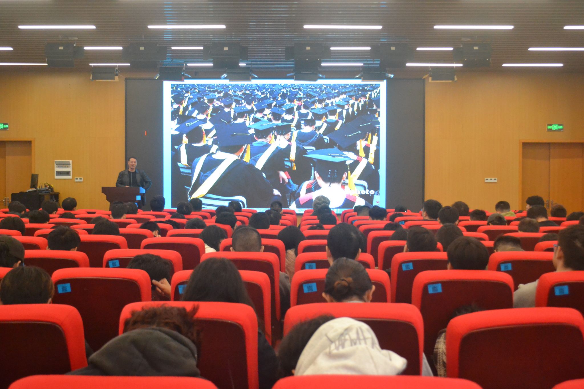 会议伊始,学院院长文良华发表了激情洋溢的就业动员发言。文院长深刻剖析了当前大学生就业形势,伴随着科技飞速发展和产业不断转型升级,学生就业应跳出“薪资”跳出“地域”的局限,同时,文院长强调了毕业论文的重要性,也对考研的同学给予了鼓励。