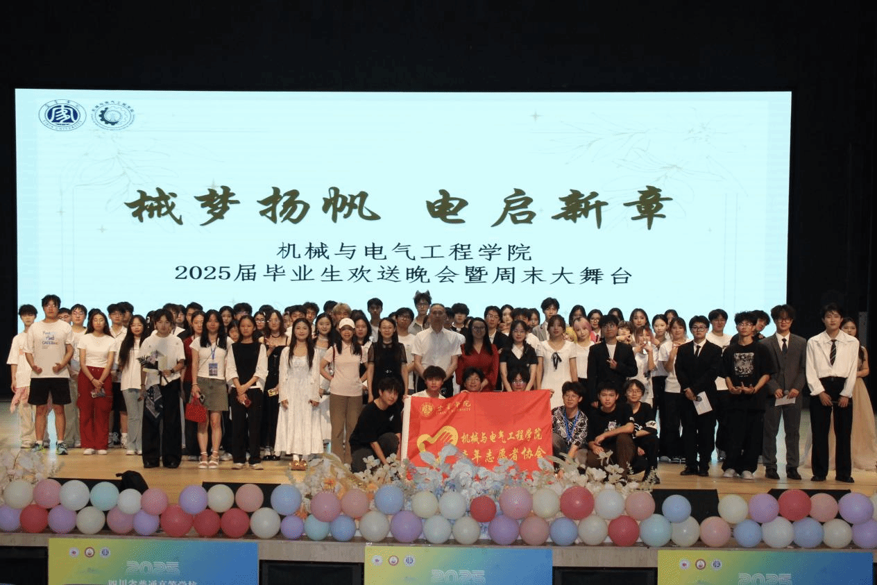 璀璨星光下,齿轮咬合着青春的回响,电流跃动着梦想的序章。6月8日晚,以“械梦扬帆,电起新章”为主题的宜宾学院机械与电气工程学院2025届毕业生欢送晚会暨周末大舞台,在临港校区开放会堂盛大举行。本次晚会由机电学院团委学生会主办,机电学院艺术团协办,旨在为即将远航的机电学子打造一场满载回忆与祝福的青春盛典,在离别之际点燃梦想,扬帆起航。