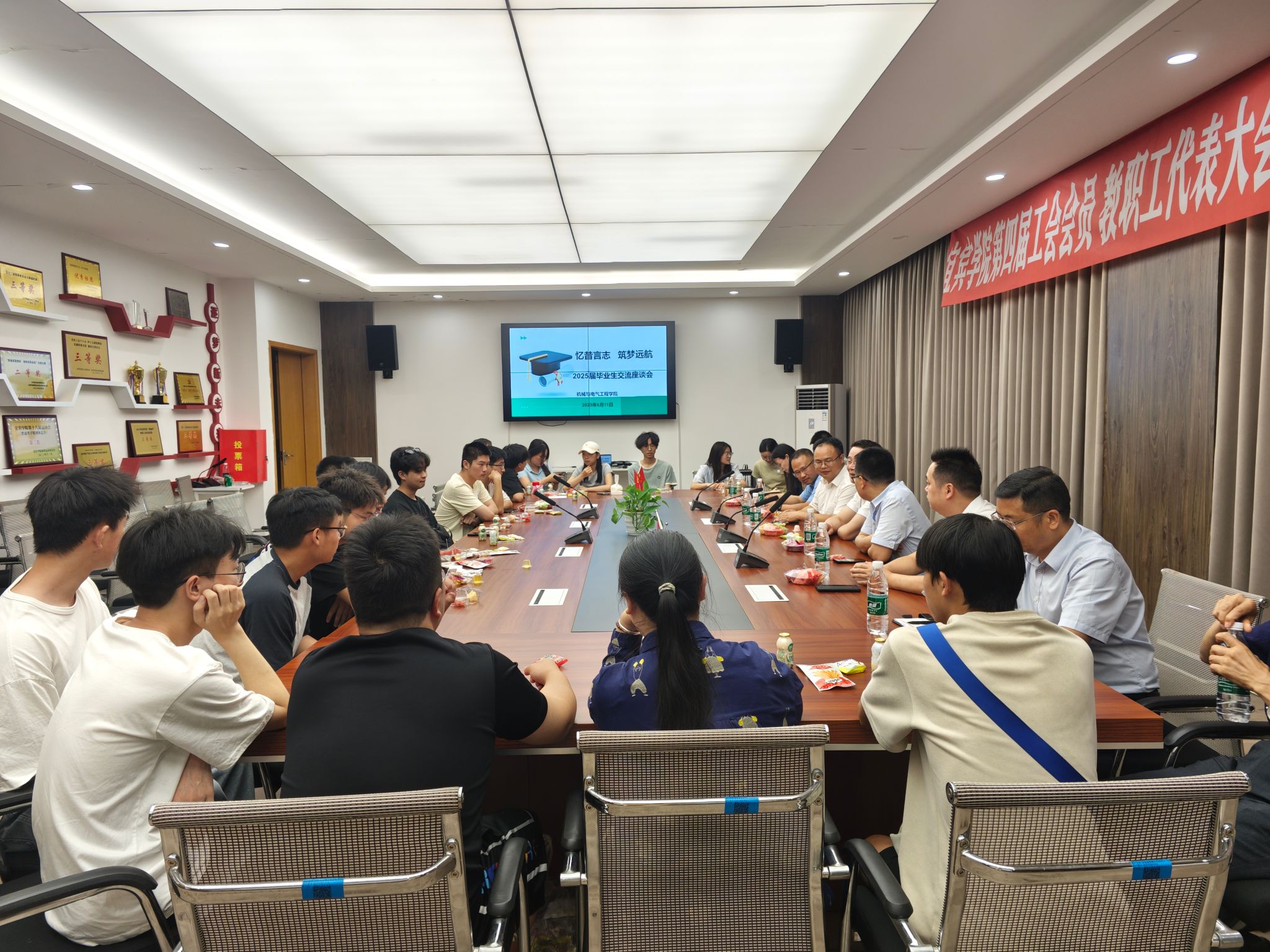 6月11日晚上,在2025届毕业生离校之际,机械与电气工程学院举办“忆昔言志 筑梦远航”毕业生座谈交流会,旨在听取毕业生心声,凝聚发展共识,助力学院高质量发展。宜宾学院副院长杨强出席座谈会。发展规划处处长徐斯雄、审计处处长范祖仲、机械与电气工程学院领导班子成员、教师代表和毕业生代表参加座谈会。