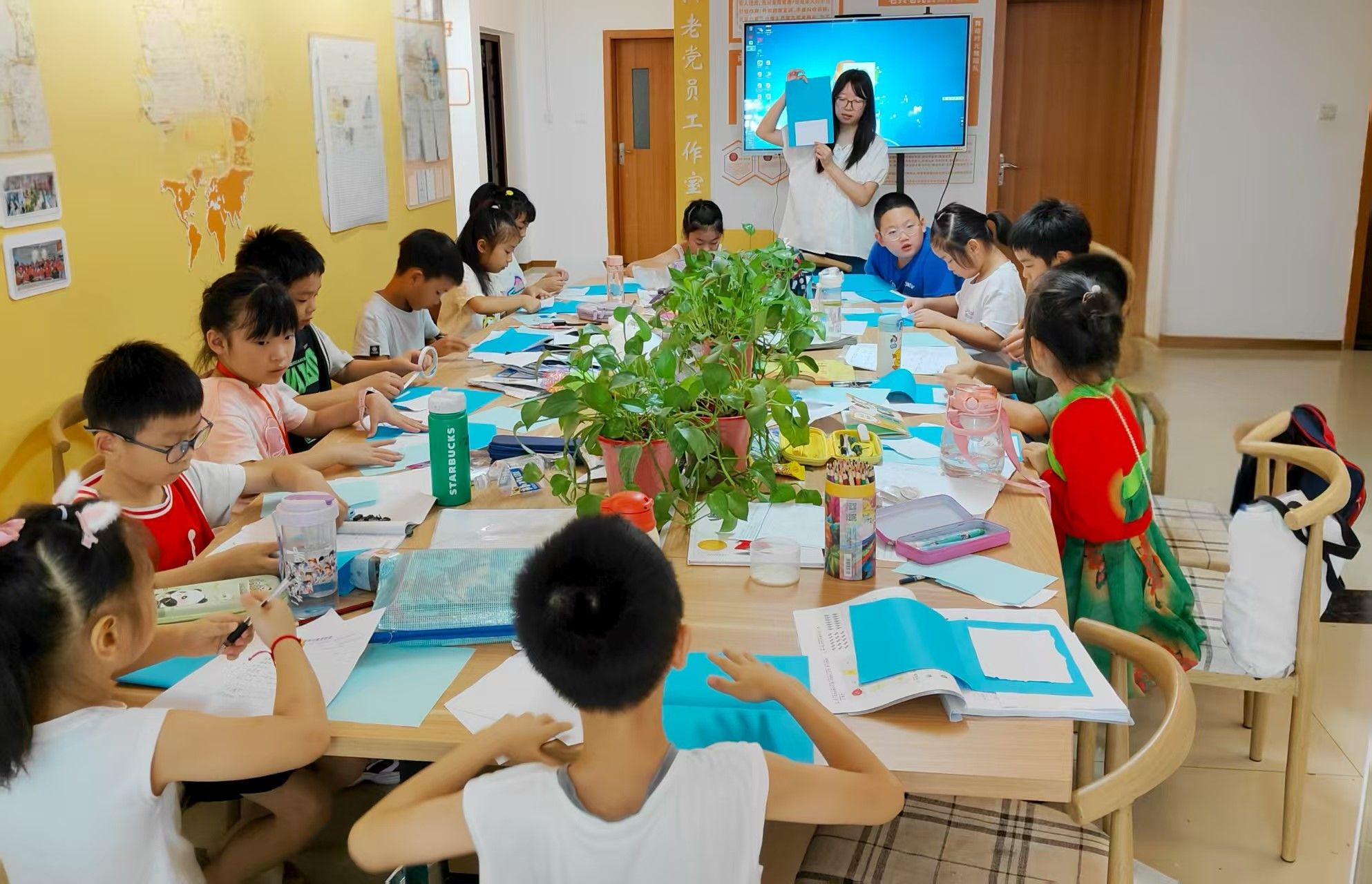 每天上午,实践队员们化身“小老师”,围绕孩子们的暑期作业开展针对性辅导,从数学公式的推导到语文作文的构思,队员们耐心解答每一个疑问,帮助孩子们逐步养成自主学习的良好习惯。与此同时,团队结合专业特色与儿童成长需求,精心设计系列课程:“邻里小管家”财商课上,孩子们通过模拟购物、零花钱规划等小游戏,树立起理性消费的观念;趣味英语课以经典动画片段、互动对话为载体,让孩子们在欢笑中积累词汇、锻炼口语表达;文学常识课则通过经典故事分享、诗词接龙等形式,带领孩子们沉浸式感受中华优秀传统文化的独特魅力。