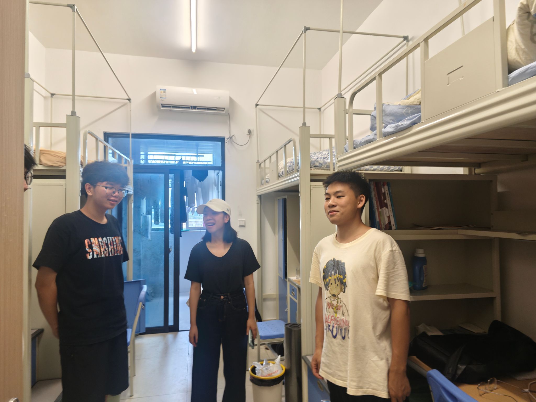 除安全排查外,还与同学们亲切交流,详细询问假期出行计划、留校安排,强调离校前需按学院要求完成请假报备,出行途中注意交通安全、做好个人防护;对留校学生,明确了假期寝室管理规定,告知紧急联络方式,确保遇到问题能及时沟通解决。同时,还提醒同学们合理安排假期时间,兼顾休息与学习,度过一个充实且有意义的双节。