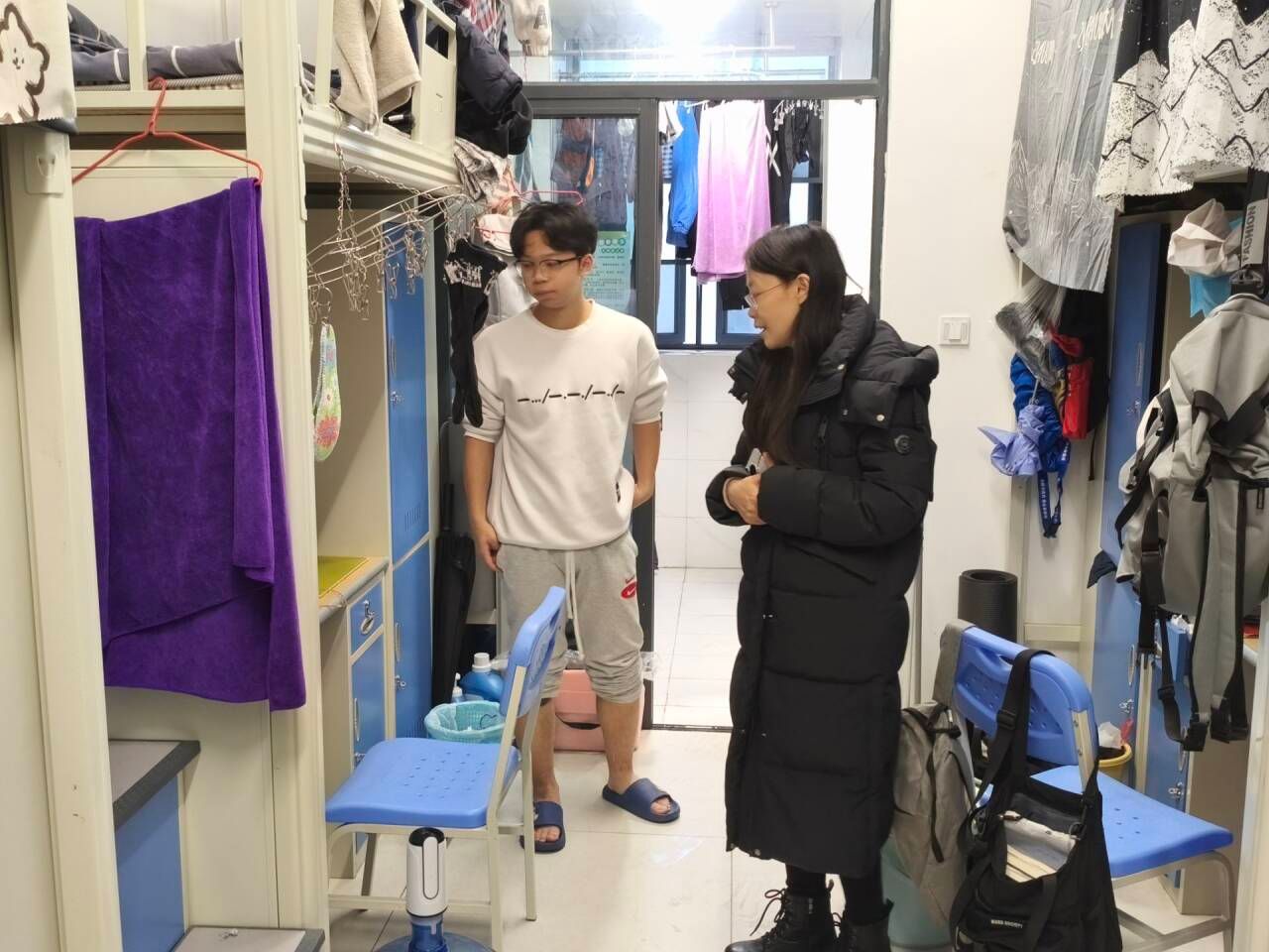 此次查寝活动以“排查安全隐患、强化安全意识、传递节日温暖”为核心目标。走访过程中,辅导员们逐间深入学生宿舍,重点对电路安全隐患、违规电器使用情况进行了细致排查,对发现的私拉乱接电线、使用大功率电器等安全隐患当场提出整改要求,并协助学生及时清理。同时,辅导员们还关注了宿舍卫生状况与通风情况,提醒同学们保持良好的居住环境,养成健康的生活习惯。
