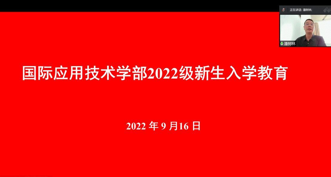 2022年9月16日上午,国际应用技术学部2022级新生开学典礼暨入学教育在线上举行。国际应用技术学部全体领导班子、教师和全体新生参加了开学典礼。典礼由学部党总支副书记潘树林主持。