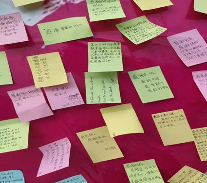 同学们在便利贴上写下了对想要感谢的人说的话,感谢父母的养育,老师的教导等等,还给父母打去了问候的电话,亲口表达了感谢。