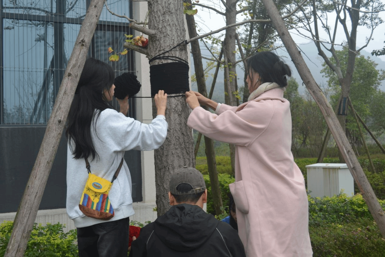 随着同学们的陆续到来,活动热度逐渐高涨。大家活力满满,表现出对此次活动的期待。本次活动共有以下四个项目:“给树木穿衣”温暖编织活动、在枫叶卡片上写下祝福、定制卡片拍照打卡以及DIY干花书签。同学们纷纷选择自己感兴趣的项目参与其中。其中,最受大家关注的当属“给树木穿衣”,大家在这个项目中充分展现了创意与巧手,也在活动中感受到了温暖与关怀,同时也体会到合作带来的收获与喜悦。