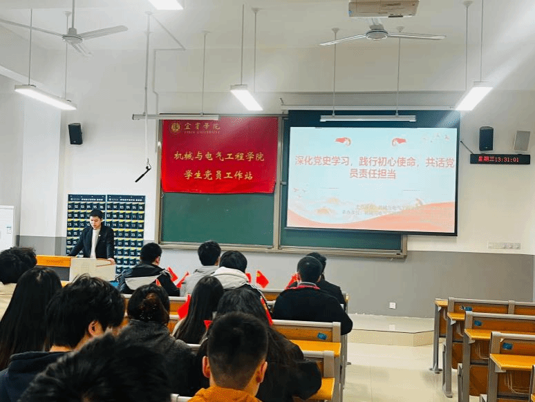 机械与电气工程学院学生党员工作站开展“深化党史学习,践行初心使命,共话党员责任担当”主题党日活动