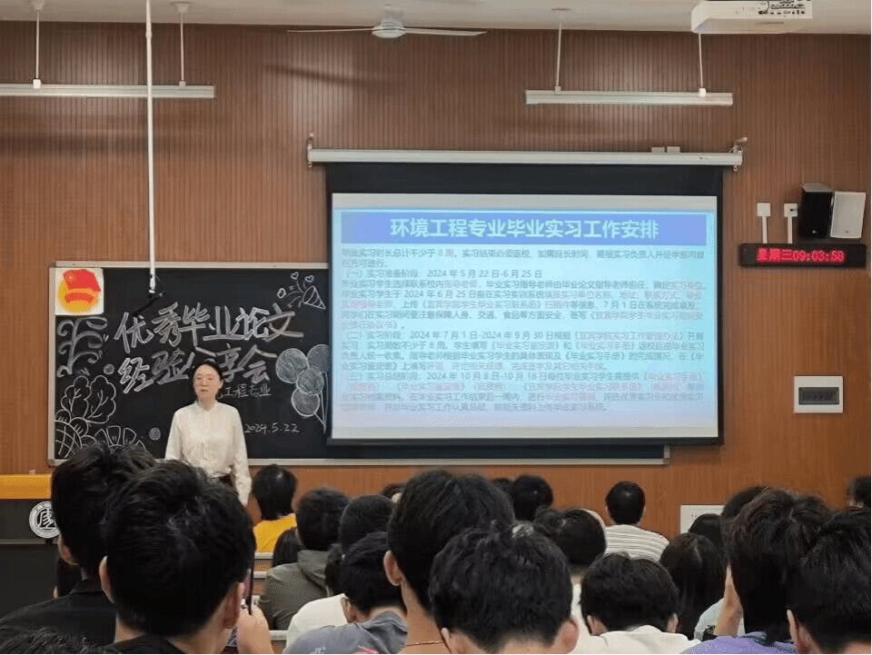 会上,主讲老师曾韵敏就毕业实习和毕业论文工作的意义、要求、安排及其注意事项做了详细的介绍,阐述了毕业实习及毕业论文在培养体系中的必要性以及在整个本科学习阶段中的重要性,要求各位同学提前做规划、做好各项准备工作,积极与导师联系沟通,认真执行论文选题和撰写相关规定,诚信写作、提高毕业论文水平。同时还强调了毕业实习的重要性和严肃性,要求同学们认真践行实习职责,积累实践经验,以踏实的作风和严肃的态度,向实习单位指导老师学习,告诫学生要时刻保持清醒,注意人身安全,充分利用大学四年学习掌握的专业知识,不断提高自己分析问题和解决问题的能力。
