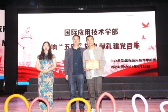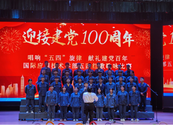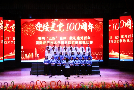为热烈庆祝中国共产党成立100周年,弘扬爱国精神,重温红色经典,增强班级凝聚力,展现学生风采,不断增强师生民族自信心和自豪感,2021年4月25日,国际应用技术学部“唱响五四旋律,献礼建党百年”红歌歌咏比赛在A区演播厅隆重举行。学部党总支副书记潘树林、党政办公室主任郭洪蓉、副主任文均、学工办副主任谢琰、张袁媛、专职辅导员以及各班班主任等作为评委出席比赛现场。
