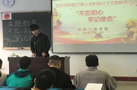 2019年11月13日星期三下午,中德工程学院开展第37期入党积极分子“不忘初心、牢记使命”主题教育。