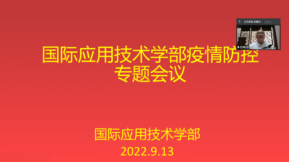 9月13日下午,国际应用技术学部召开全体教职工线上会议,专题传达学校疫情防控工作会精神,并安排近期重点工作,学部副部长(负责工作)徐洲主持会议 。