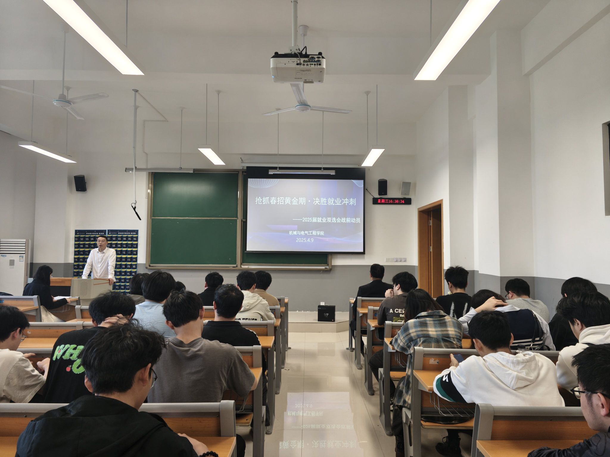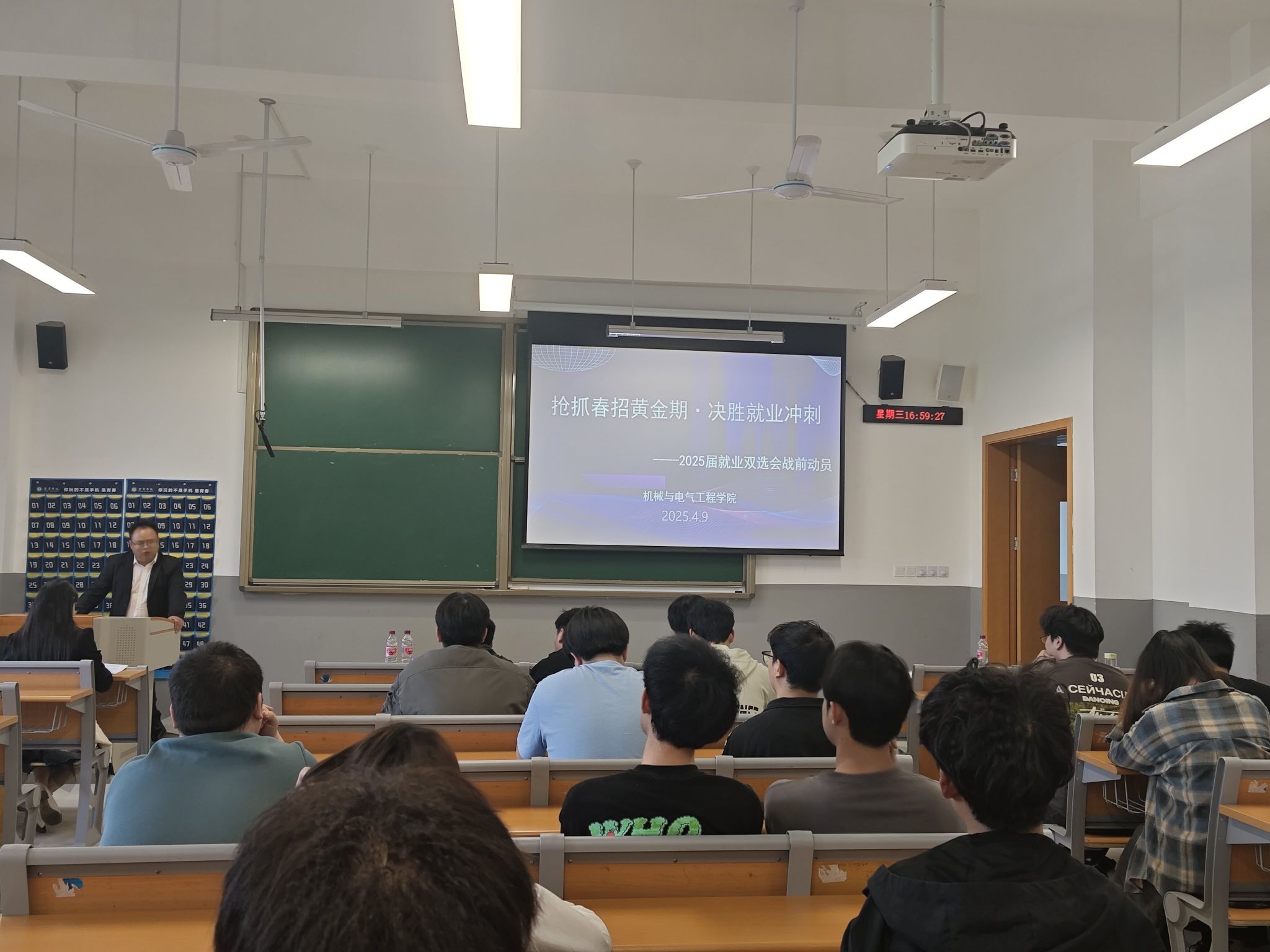 为全力推动2025届毕业生就业工作,进一步提升毕业生就业认知,增强其求职竞争力,4月9日,机械与电气工程学院于3号楼3310教室召开了2025届毕业生双选会站前动员大会。学院党委书记潘树林、院长文良华、党委副书记顾秋香、毕业班班主任、辅导员以及2025届尚未落实就业的毕业生齐聚一堂,共商就业事宜。