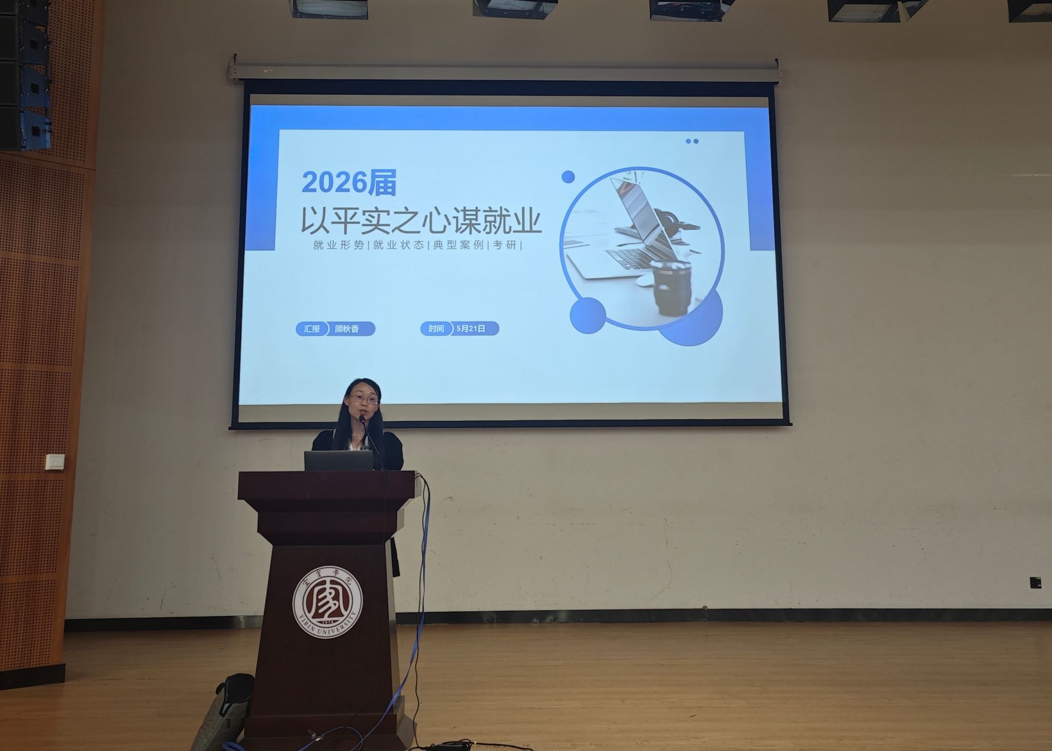 学院党委副书记顾秋香以“以平实之心谋就业”为主题做就业动员,倡导同学们立足专业所学,以务实态度对待首次就业选择,主动深入基层岗位积累实践经验、锤炼职业能力。学院院长文良华作总结讲话,着重强调“放低姿态、脚踏实地“的职业精神,要求同学们在实习期间严格遵守用人单位规章制度与安全操作规程,保持与校内导师、班主任辅导员的常态化沟通机制,并就按时返校完成毕业论文、材料归档等后续环节提出明确要求。