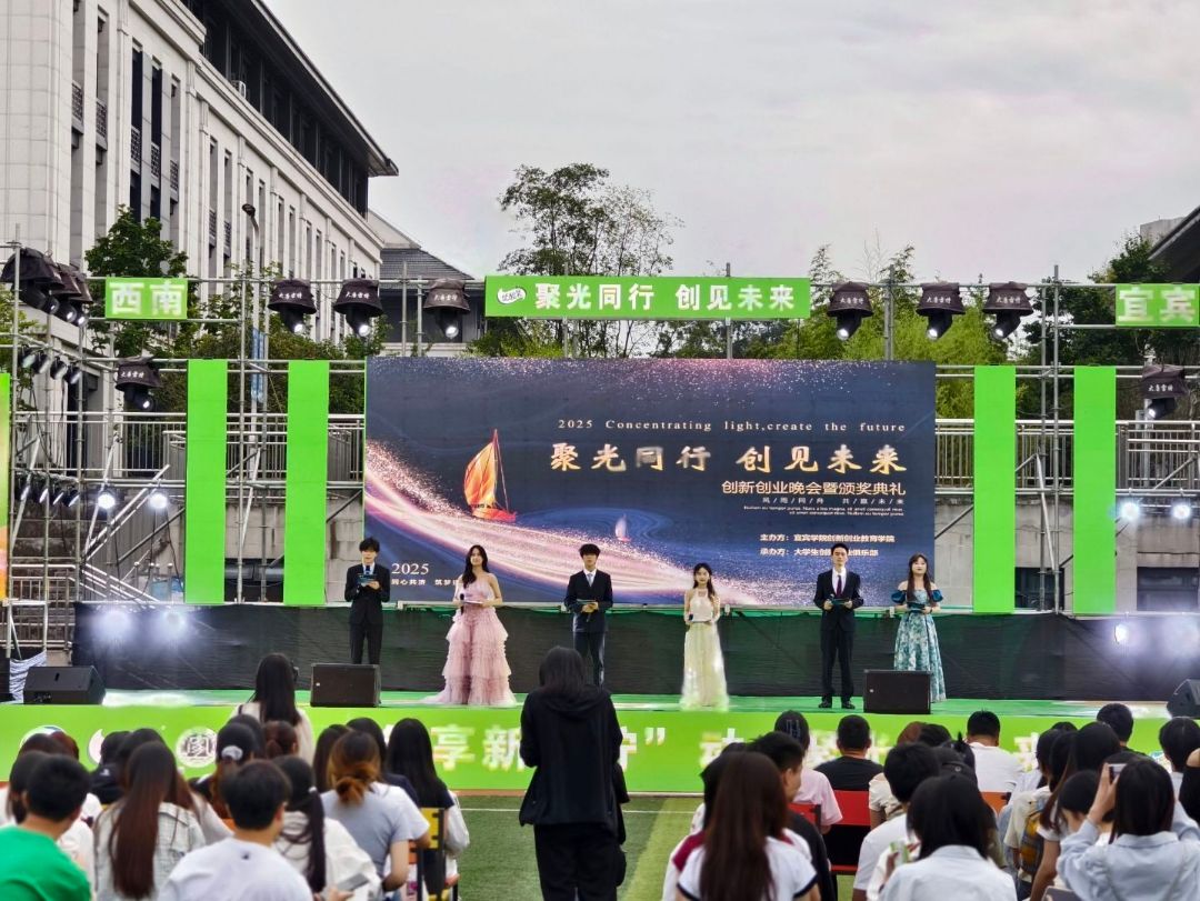 为深入学习贯彻习近平总书记来川来宜来校视察的重要指示精神,进一步激发校园创新创业活力,宜宾学院创新创业教育学院在2025年5月24日于临港校区举办了“聚光同行,创见未来”第三届创新创业晚会暨颁奖典礼。此次活动不仅有各种精彩纷呈的创意节目,还有创新创业项目路演,充分展现了我校双创教育的丰硕成果。最后,晚会还对在创新创业实践中表现优异的学生予以表彰,鼓励更多同学投身创新创业。本次晚会用艺术诠释创业故事,以舞台点亮创新星河,共同书写属于青年创客的热血篇章。