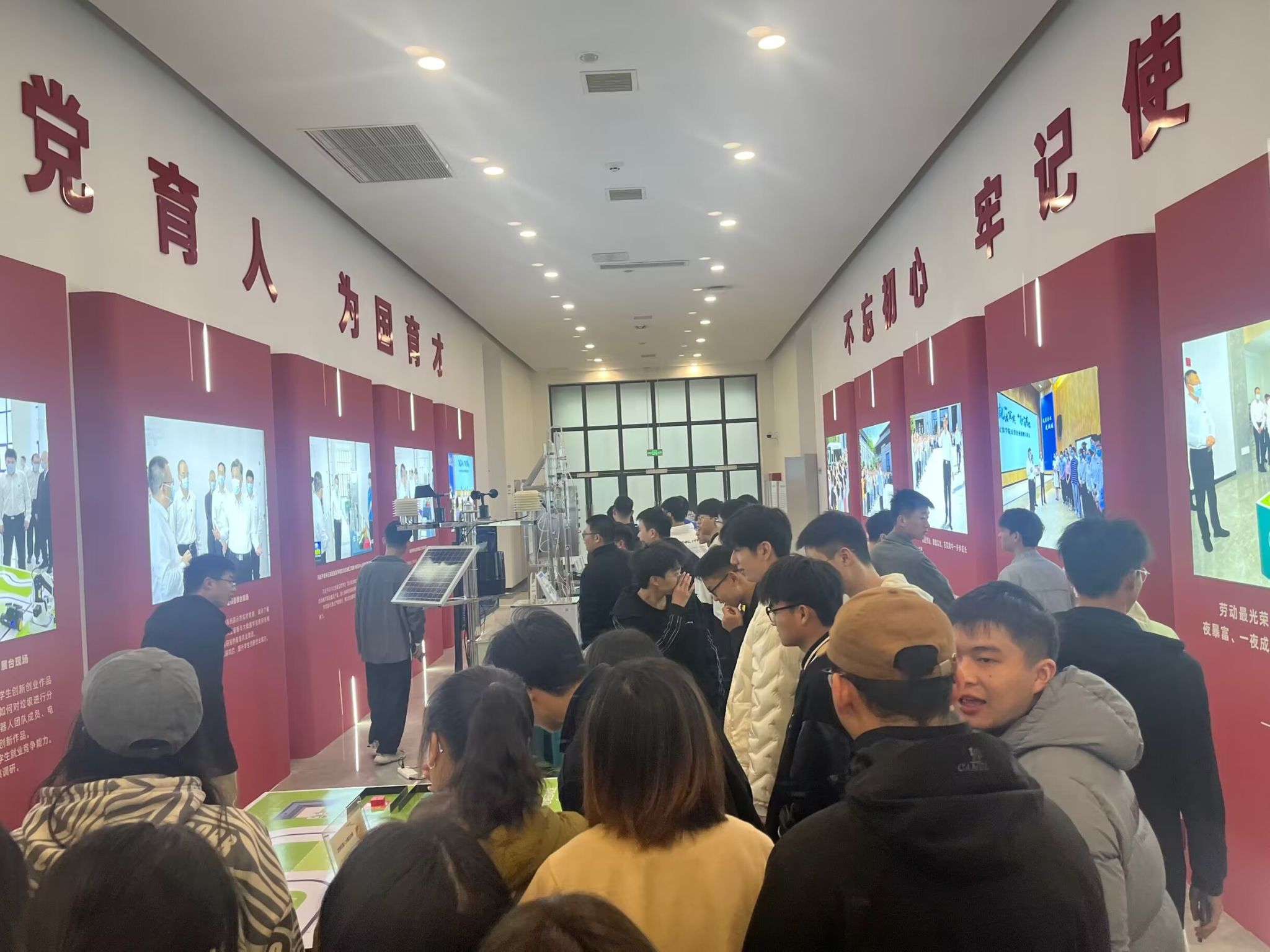 在求实会堂,各班班主任向学生详细介绍习近平总书记来校视察相关情况,带领大家参观毕业生就业情况展台,模拟垃圾智能分类运输机器人展台、智慧农业物联网监控系统、油樟创新展区、就业创业指导服务展区,以及习近平总书记来校调研考察的招聘会会场,并组织学生观看了习近平总书记视察宜宾学院相关视频资料。